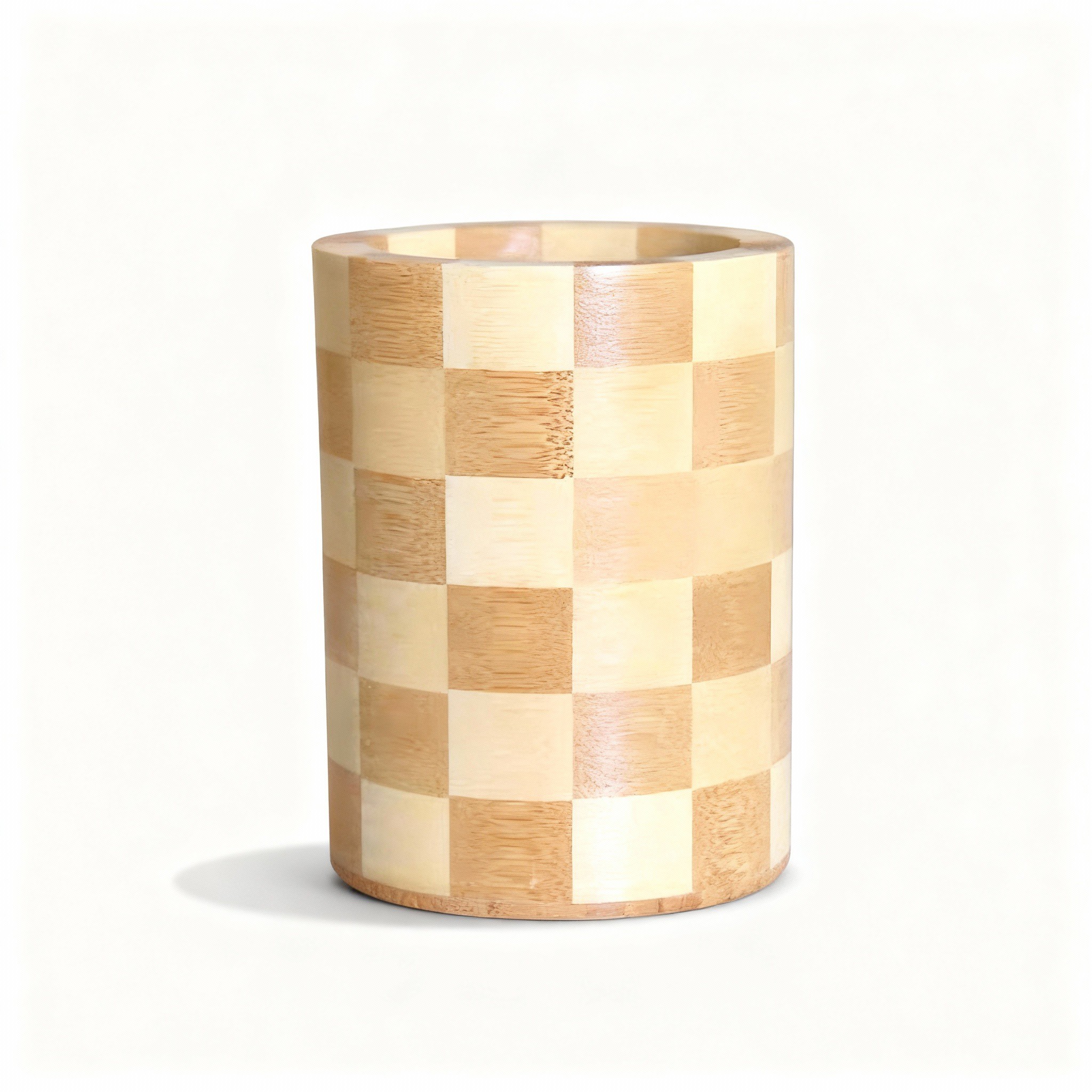 طرح شطرنجی بامبو روشن و تیره باعث می‌شه این ظرف علاوه بر کاربرد، نقش دکوری هم ایفا کنه.