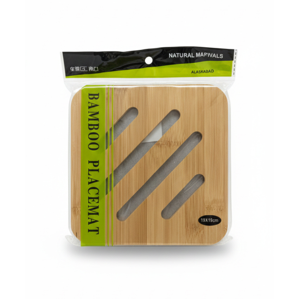 زیرقابلمهای بامبو ضدآب با ابعاد ۱۹×۱۹ سانتیمتر، با هدف افزایش ایمنی و جلوگیری از سوختگی یا تغییر رنگ سطوح آشپزخانه طراحی شده است. بامبو بهکاررفته در این محصول دارای مقاومت ذاتی در برابر رطوبت و حرارت بوده و در مقابل فشار و وزن ظروف سنگین نیز تغییر شکل نمیدهد. طراحی مشبک و شیارهای طولی روی محصول، حرارت را بهصورت یکنواخت پخش کرده و مانع تماس مستقیم و طولانی مدت حرارت با میز میشود. این زیرقابلمهای به دلیل ظاهر طبیعی چوب، بهراحتی با دکور آشپزخانه مدرن و کلاسیک هماهنگ میشود. مناسب استفاده زیر قابلمه، قوری، کتری، دیس و ظروف فر است و شستوشوی آن بهصورت دستی بسیار آسان بوده و لکه و بو را به خود جذب نمیکند.