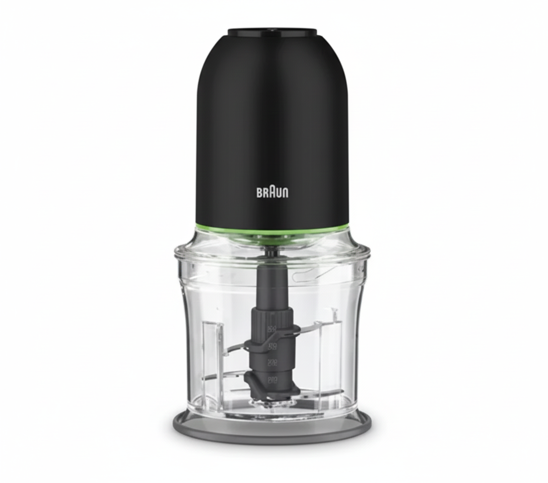 خردکن براون CH3011 از سری MultiPractic 3 یک خردکن جمع‌وجور، قدرتمند و بسیار کاربردی برای آشپزخانه‌های خانگی است. موتور ۵۰۰ واتی این دستگاه به‌همراه تکنولوژی پیشرفته QuadBlade با چهار تیغه استیل ضدزنگ لایه‌ای، تا حدود ۲۵٪ مواد بیشتری را نسبت به خردکن‌های دو تیغه‌ای در یک نوبت پردازش می‌کند؛ از سبزی و سبزیجات معطر گرفته تا مغزها، گوشت و حتی یخ کاسه ۰.۵ لیتری BPA-Free برای آماده کردن انواع سس، دیپ، پیاز داغ، مخلوط کوکو و کتلت یا غذای کودک کاملاً کافی است و طراحی فشرده ۱۳.۵۵×۱۳.۵۵×۲۶.۸ سانتی‌متری با وزن حدود ۱.۱۲ کیلوگرم باعث می‌شود به راحتی روی کانتر یا داخل کابینت جا شود.  کنترل فشاری تک‌دکمه با ۲ سرعت، قفل ایمنی کاسه، پایه ضدلغزش و قطعات قابل شست‌وشو در ماشین ظرف‌شویی، استفاده روزمره از این خردکن را سریع، امن و کم‌دردسر می‌کند.