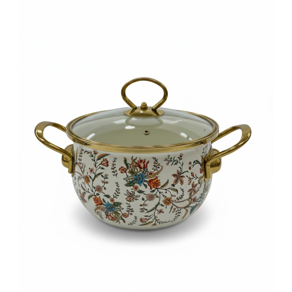 طراحی گلدار سنتی با رنگهای شاد، این محصول را به گزینهای خاص برای افرادی تبدیل کرده است که به ظروف دکوری و متفاوت علاقهمندند. درب شیشهای مقاوم به حرارت، امکان مشاهده روند پخت را فراهم میسازد و نیاز به باز و بسته کردن مکرر درب را کاهش میدهد. دستههای فلزی طلاییرنگ علاوه بر زیبایی، استحکام مناسبی داشته و در برابر حرارت مقاوم هستند.