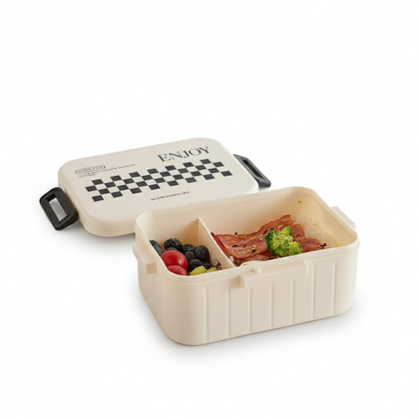 این ظرف غذا با تمرکز بر سادگی و کارایی طراحی شده است. بدنه مستطیلی با لبههای نرم، فضای داخلی مناسبی برای وعدههای غذایی مختلف فراهم میکند. وجود جداکننده داخلی، امکان تفکیک غذا، میوه یا مخلفات را فراهم کرده و باعث میشود غذا ظاهر مرتبتری داشته باشد. درب این ظرف با قفلهای کناری بهخوبی روی بدنه قرار میگیرد و حس اطمینان بیشتری هنگام حمل ایجاد میکند. طراحی مینیمال با نوشته ENJOY و الگوی شطرنجی روی درب، جلوهای مدرن و امروزی به محصول داده است. این ظرف غذا برای استفاده روزانه در محل کار، دانشگاه، مدرسه یا حتی سفر انتخابی کاربردی و خوشاستایل محسوب میشود.