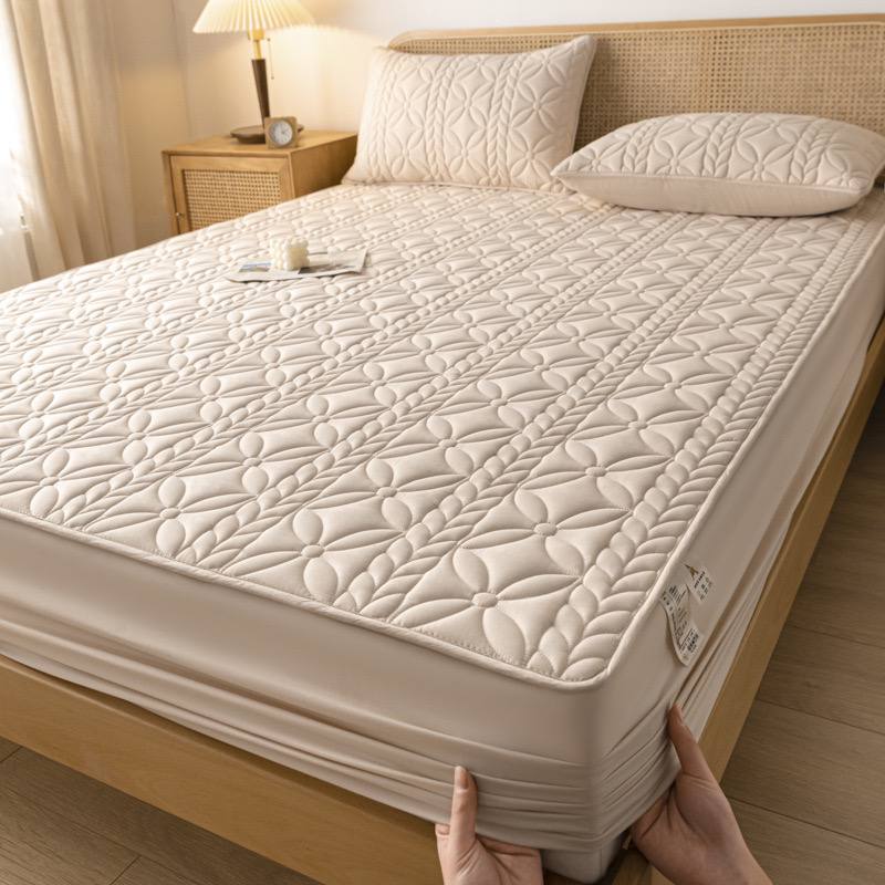 روی سطح نخی نرم دراز میکشید و تشک زیر شما در برابر مایعات و لکهها محافظت میشود؛ بدون صدای آزاردهنده و بدون حس پلاستیکی. روتختی چهار فصل نخی ضدآب، آرامش خواب و خیال راحت از تمیزی تشک را همزمان به شما میدهد.