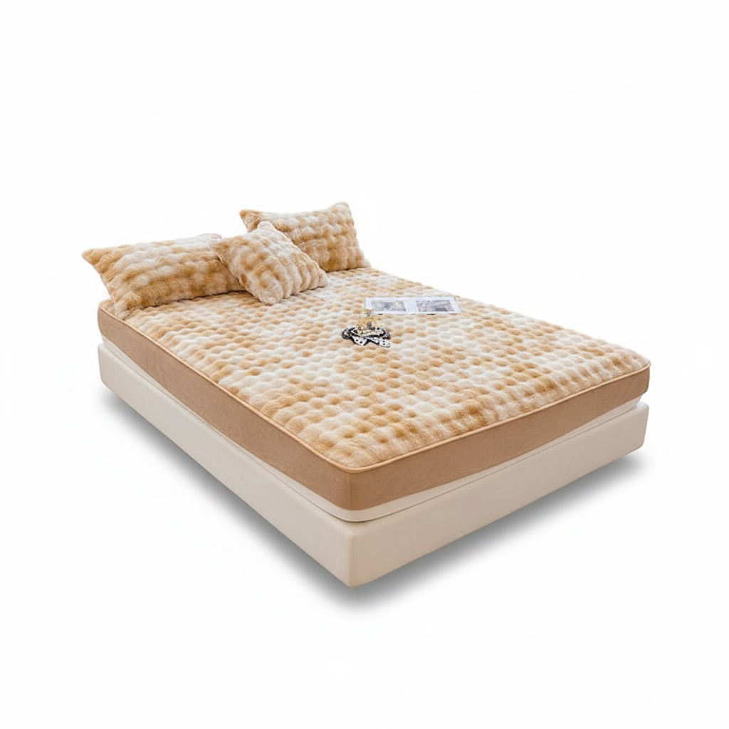 روتختی تمام کش پشم خرگوشی دو نفره مناسب تشک ۱۶۰×۲۰۰، انتخابی ایدهآل برای کسانی است که میخواهند سطح تختشان هم گرم و نرم باشد و هم همیشه مرتب دیده شود. بافت پشم خرگوشی روی سطح، حس فوقالعاده نرم و کرکی ایجاد میکند و برای شبهای سرد پاییز و زمستان، گرمای دلنشینی به تخت میدهد. طراحی تمام کش به همراه نوار دور تشک، کمک میکند روتختی روی تشک ۱۶۰×۲۰۰ بهخوبی فیت شود و حتی در صورت جابهجایی در خواب، جمع نشود. همراه این روتختی، روبالش هماهنگ عرضه میشود تا نمای تخت کاملتر و حرفهایتر دیده شود. این مدل برای اتاق خواب اصلی، اتاق زوجها و حتی خانههای مبلهای که میخواهند ظاهر گرم و دنجی داشته باشند، گزینهای بسیار جذاب است.