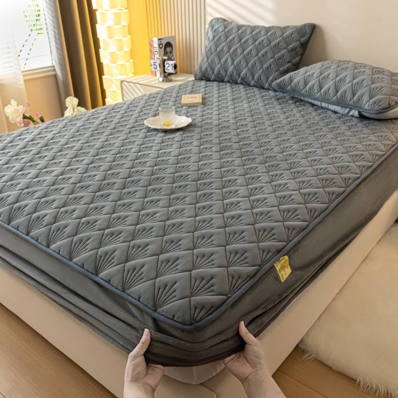روتشکی تمام کش مخمل ابریشمی نواردوزی دو نفره مناسب تشک ۱۶۰×۲۰۰ همراه دو روبالش، برای زمانی است که میخواهید هم از تشک خود بهتر محافظت کنید و هم تخت را همیشه مرتب و شیک ببینید. سطح مخمل ابریشمی، لمس بسیار نرم و لطیفی دارد و نواردوزی دور کار، ظاهر روتشکی را تمیز و حرفهای میکند. طراحی تمام کش، دور تا دور تشک را میگیرد و مانع از جمع شدن ملحفه در طول خواب میشود، در حالی که دو روبالش هماهنگ، ست خواب را کامل و یکدست نشان میدهند. این روتشکی برای استفاده روزمره در اتاق خواب اصلی، خانههای مبله و حتی برای تشکهای حساس انتخاب بسیار مناسبی است؛ هم ظاهر تخت را ارتقا میدهد و هم شستشو و نگهداری تشک را سادهتر میکند.