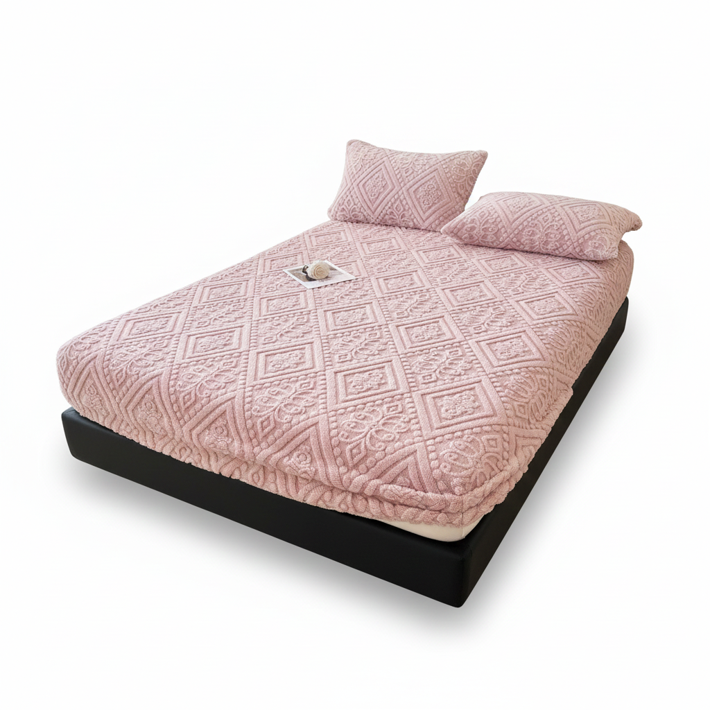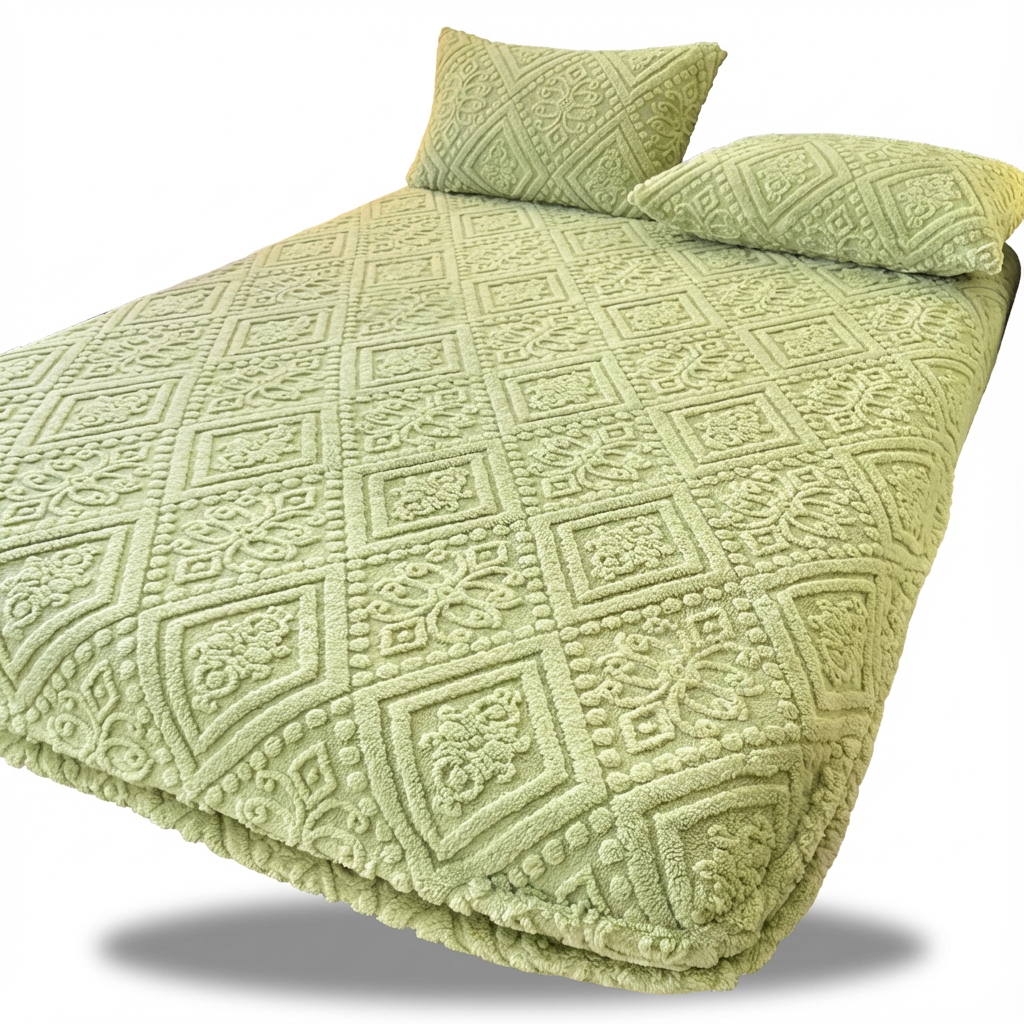 روتختی تمام کش مخمل سه‌تکه دو نفره همراه دو روبالش