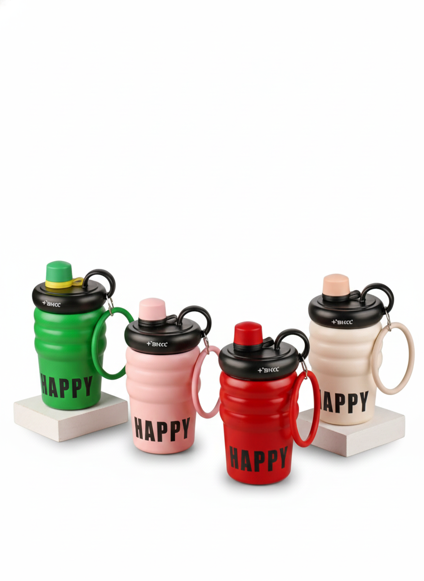 اگر میخواهید نوشیدنیهای روزمرهتان را در یک ماگ سبک، خوشدست و شاد همراه خود داشته باشید، تراول ماگ دستهدار فانتزی مدل HAPPY حجم ۳۵۰ میلیلیتر را همین حالا به سبد خرید اضافه کنید و از امروز، آب و قهوهتان را در لیوانی بنوشید که هر بار دیدنش لبخند به لب میآورد.