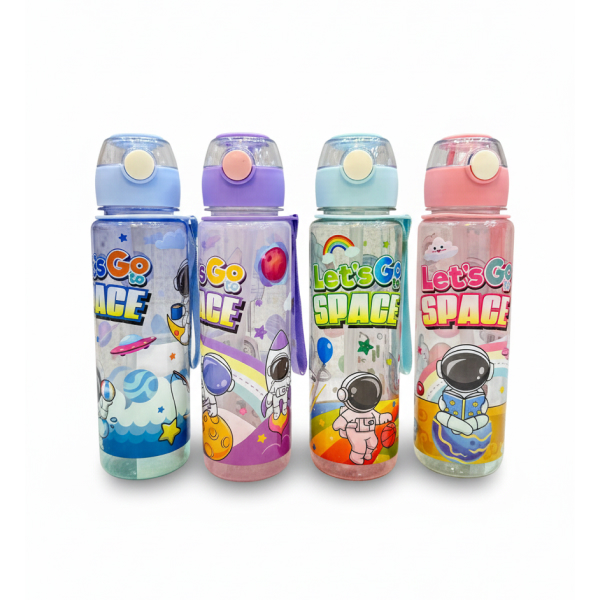 این قمقمه با الهام از دنیای فضا و شخصیتهای کارتونی فضانورد طراحی شده و بهخوبی با سلیقه کودکان هماهنگ است. رنگبندی متنوع و شاد در کنار نوشته Let’s Go to Space، ظاهری دوستداشتنی و پرانرژی به محصول داده است. بدنه نیمهشفاف امکان مشاهده میزان نوشیدنی داخل قمقمه را فراهم میکند و طراحی درب دکمهای، باز و بسته کردن آن را حتی برای دستهای کوچک کودک آسان میسازد. محافظ شفاف روی درب نیز به حفظ بهداشت دهانه کمک میکند. این قمقمه میتواند همراهی مناسب برای مدرسه، کلاس، پارک، سفر و فعالیتهای روزمره کودک باشد و با ظاهر جذاب خود، کودک را به نوشیدن مایعات بیشتر تشویق کند.