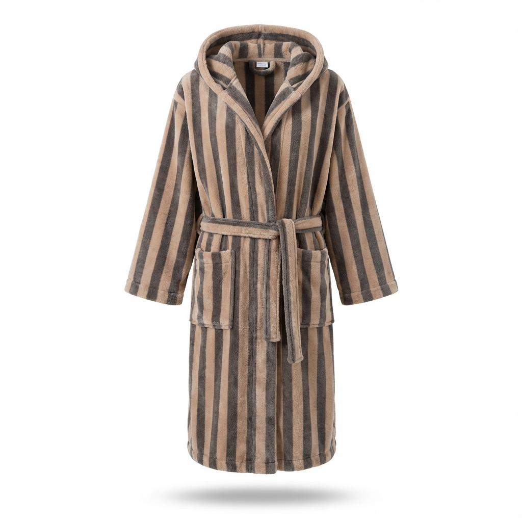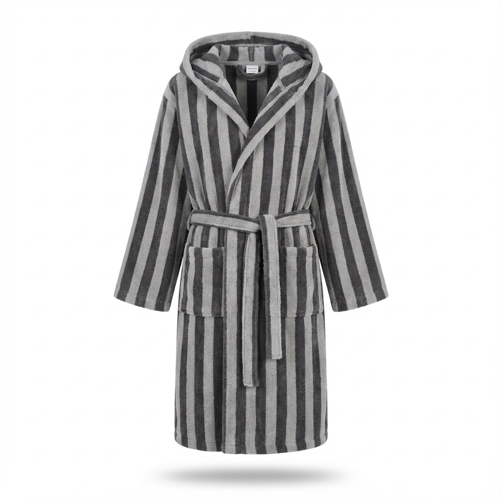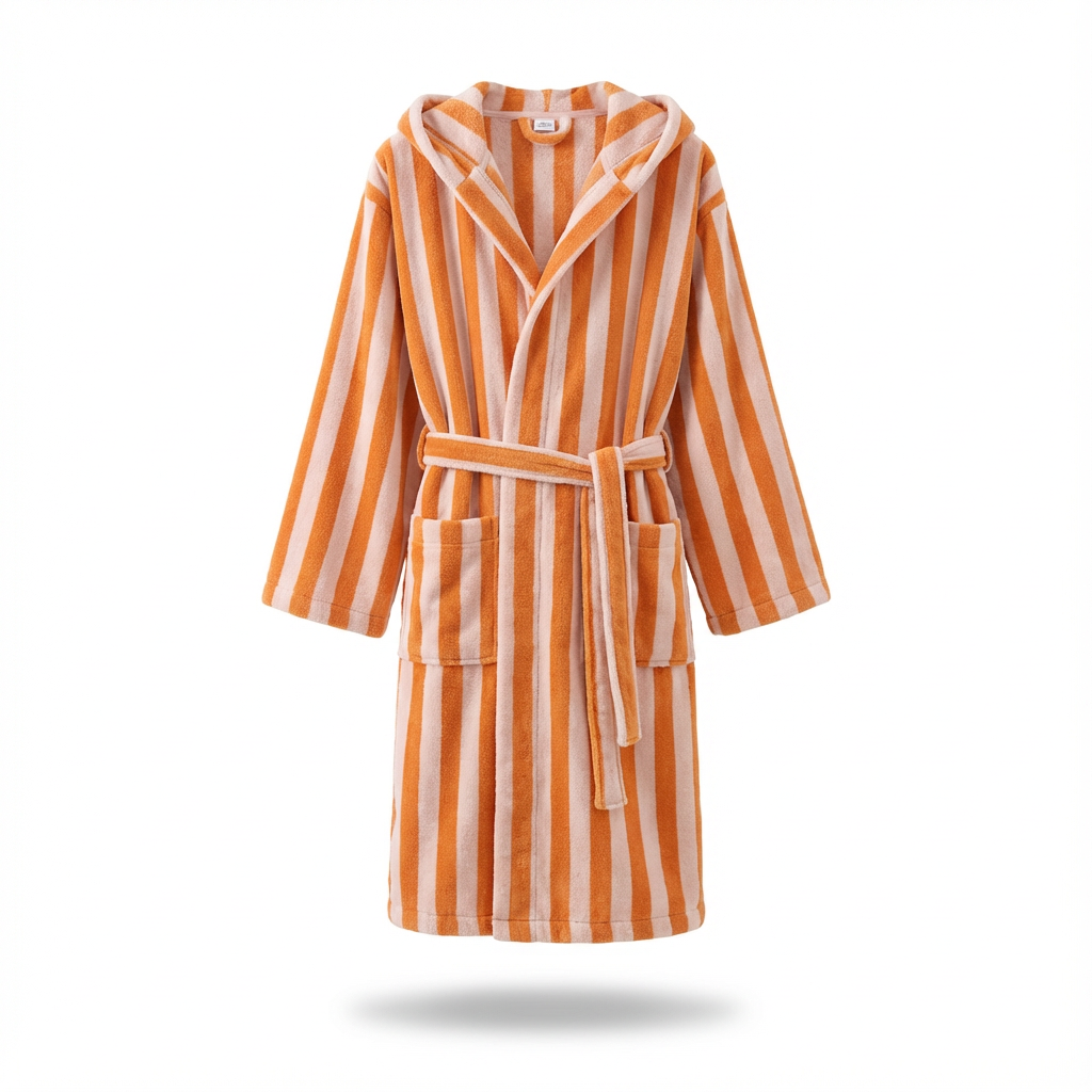 طراحی کلاهدار، شانهها و سر را گرم نگه میدارد و برای خشککردن موها در لحظات اولیه بعد از حمام، بسیار کاربردی است. کمربند همجنس حوله، امکان تنظیم دور کمر را فراهم میکند تا متناسب با فرم بدن بسته شود و هنگام راهرفتن در خانه یا رفتوآمد به دوش و سونا، ثابت بماند. آستینها کمی گشاد طراحی شدهاند تا هم پوشیدن و درآوردن حوله راحتتر باشد و هم حرکت دستها محدود نشود. قد حوله تا حدود زانو یا کمی پایینتر میرسد و برای استفاده خانگی، استخر، باشگاه، مسافرت و هتل، پوشش مناسبی ایجاد میکند. راهراههای عمودی در چند ترکیب رنگ جذاب، این تنپوش را از نظر ظاهری کاملاً متمایز کرده و آن را تبدیل به انتخابی مناسب برای هدیهدادن به عزیزان نیز میکند.