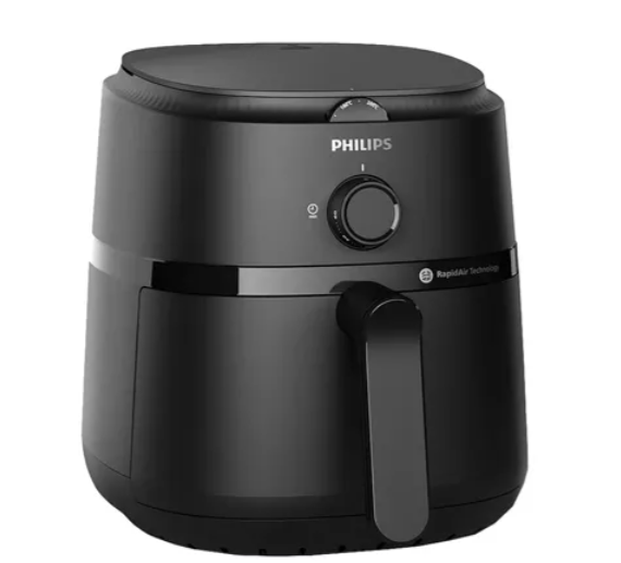 سرخ کن فیلیپس مدل NA120 از سری 1000 فیلیپس، یک هواپز جمعوجور و اقتصادی برای خانوادههای ۲ تا ۳ نفره است که سرخکردن، پختن و گریلکردن را با حداقل روغن ممکن میکند. این دستگاه با ظرفیت ۴.۲ لیتر و توان ۱۵۰۰ وات، برای پخت روزمره سیبزمینی، مرغ، ماهی، سبزیجات و انواع اسنک کاملاً کافی است. استفاده از تکنولوژی Rapid Air و طراحی کاسه با الگوی ستارهای، گردش هوای یکنواختی ایجاد میکند تا سطح غذا ترد و طلایی و داخل آن نرم بماند، در حالیکه میزان چربی تا حدود ۹۰ درصد کمتر از روشهای سنتی سرخکردن است. کنترل دستگاه از طریق دو ولوم چرخشی (تنظیم دستی دما و زمان) انجام میشود؛ این یعنی کاربری بسیار ساده بدون منوهای پیچیده. بدنهی پلاستیک مقاوم و ضدخش، کاسه و سبد تفلون نچسب و قطعات قابل شستشو در ماشین ظرفشویی، نگهداری و نظافت دستگاه را بسیار راحت کرده است.