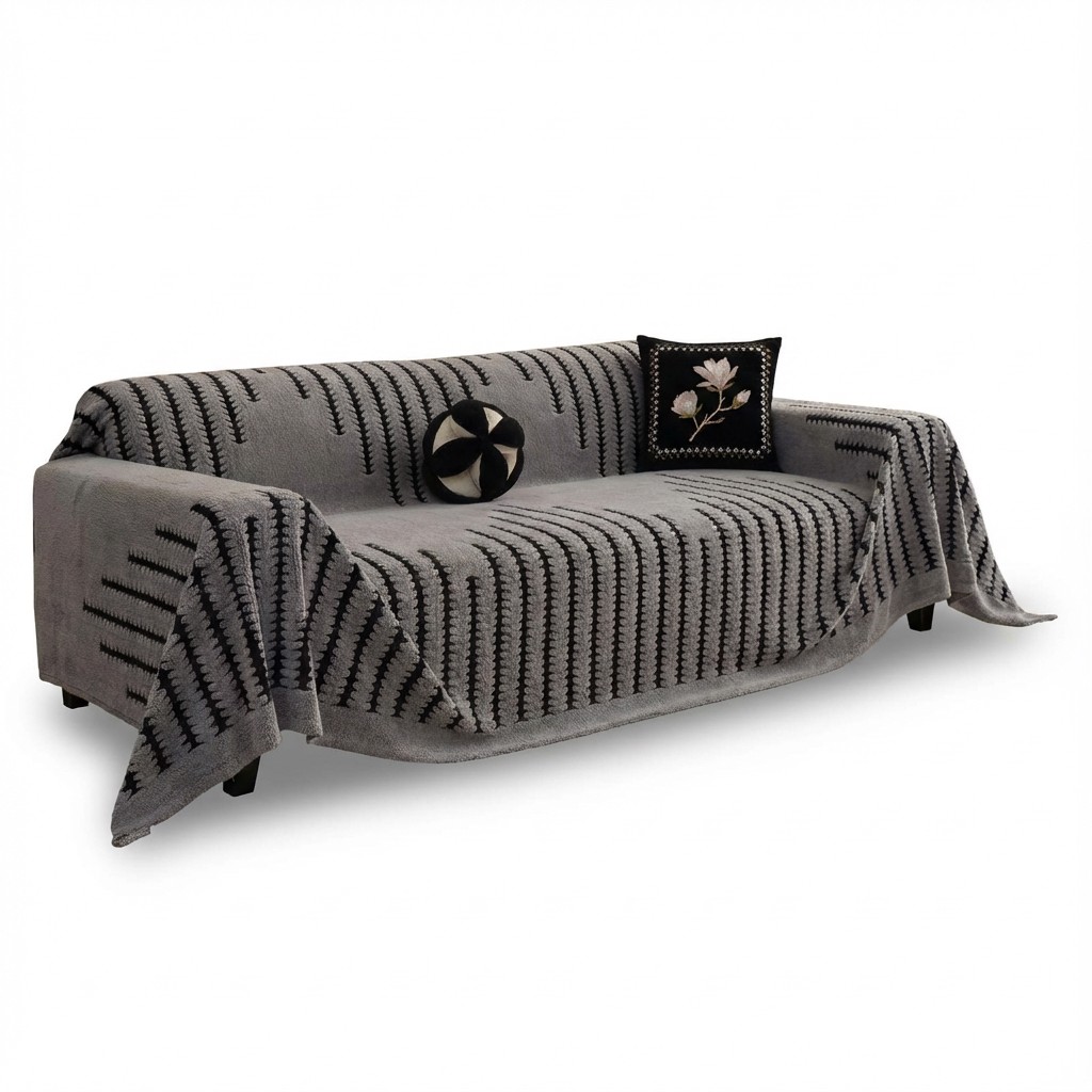 ابتدا تکه بزرگتر را روی مبل سهنفره پهن کنید و لبهها را در اطراف نشیمن، دستهها و پشت مبل تنظیم کنید تا سطح کار یکنواخت و مرتب شود. سپس تکه با ابعاد ۱۸۰×۱۳۰ سانتیمتر را روی مبل دونفره قرار دهید و در صورت نیاز، بخشهای اضافی را زیر نشیمن یا پشت مبل تا کنید. دو تکه کوچکتر را روی مبلهای تکنفره پهن کنید و با کمی فرمدهی در کنارهها، آنها را ثابت نگه دارید. برای مهمانیها میتوانید گوشهها را کمی مرتبتر و کشیدهتر تنظیم کنید تا مبلها ظاهری رسمیتر داشته باشند و در استفاده روزمره، تنها با چند حرکت ۳۰ ثانیهای، چینها را از بین ببرید.